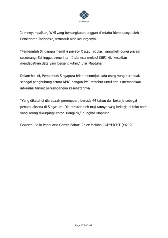 Ia menyampaikan, WNI yang bersangkutan enggan diketahui identitasnya oleh