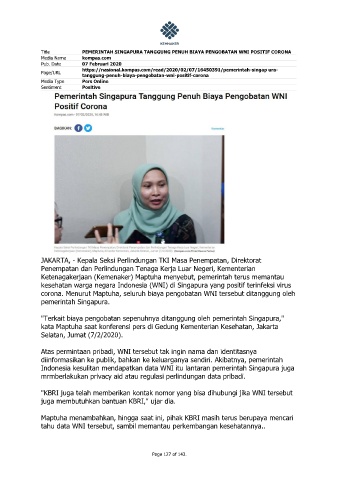 corona. Menurut Maptuha, seluruh biaya pengobatan WNI tersebut ditanggung oleh