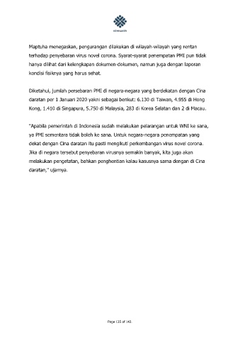 terhadap penyebaran virus novel corona. Syarat-syarat penempatan PMI pun tidak