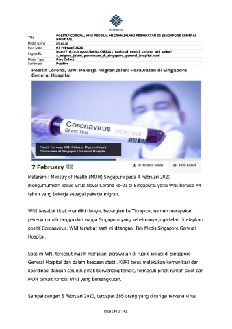 Title POSITIF CORONA, WNI PEKERJA MIGRAN JALANI PERAWATAN DI SINGAPORE GENERAL