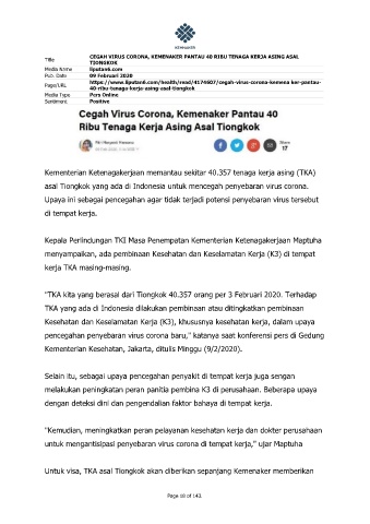 Title CEGAH VIRUS CORONA, KEMENAKER PANTAU 40 RIBU TENAGA KERJA ASING ASAL