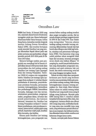 Title OMNIBUS LAW Media Name Riau Post Pub. Date 09 Februari 2020 Page/URL 19 Media Type Koran Sentiment Negative Page 20 of 143.