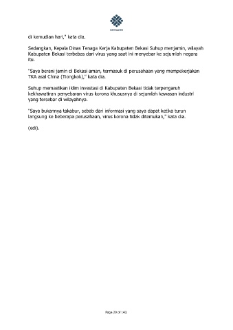 langsung ke beberapa perusahaan, virus korona tidak ditemukan," kata dia.