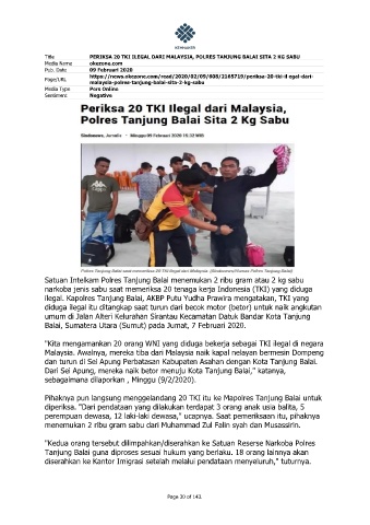 Title PERIKSA 20 TKI ILEGAL DARI MALAYSIA, POLRES TANJUNG BALAI SITA 2 KG SABU
