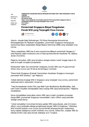 Title PEMERINTAH SINGAPURA BIAYAI PENGOBATAN PENUH WNI YANG TERJANGKIT VIRUS
