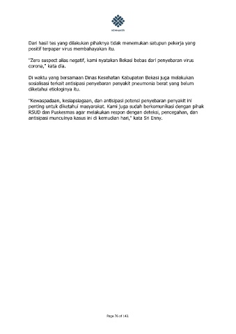 "Zero suspect alias negatif, kami nyatakan Bekasi bebas dari penyebaran virus