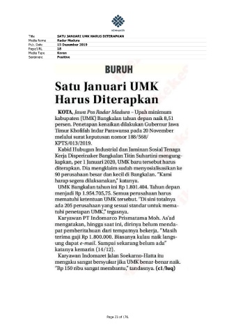 Title SATU JANUARI UMK HARUS DITERAPKAN Media Name Radar Madura Pub. Date 15 Desember 2019 Page/URL 18 Media Type Koran Sentiment Positive Page 23 of 176.