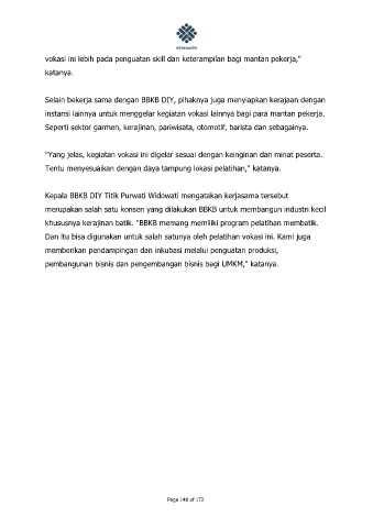 instansi lainnya untuk menggelar kegiatan vokasi lainnya bagi para mantan pekerja.