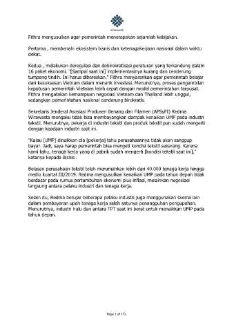 bayar. Jadi, saya harap pemerintah bisa mengeti kondisi tekstil sekarang. Karena