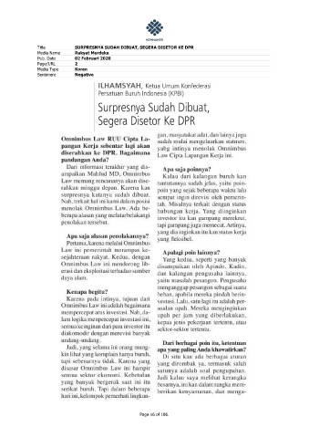 Title SURPRESNYA SUDAH DIBUAT, SEGERA DISETOR KE DPR Media Name Rakyat Merdeka Pub. Date 02 Februari 2020 Page/URL 2 Media Type Koran Sentiment Negative Page 16 of 186.