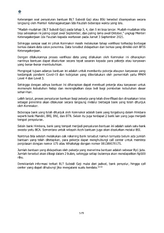 Keterangan soal penyaluran bantuan BLT Subsidi Gaji atau BSU tersebut disampaikan secara