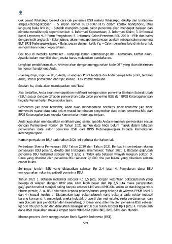 penyaluran BSU pekerja, dikutip dari Instagram @kemnaker: Tahun 2020 1. Batasan gaji/upah