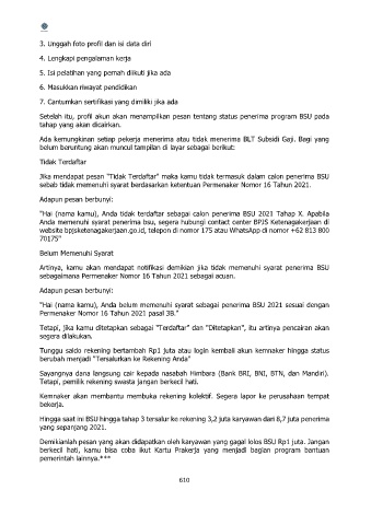"Hai (nama kamu), Anda belum memenuhi syarat sebagai penerima BSU 2021 sesuai dengan