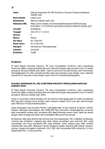 penyaluran Bantuan Subsidi Upah (BSU). Tahun ini perseroan kembali ditunjuk oleh Kementerian