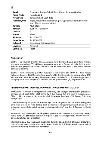 Judul Penyaluran Bantuan Subsidi Upah Ditarget Rampung Oktober