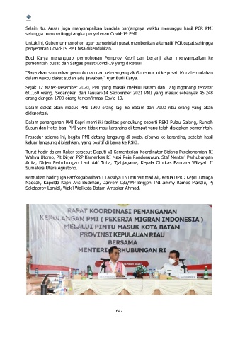 Selain itu, Ansar juga menyampaikan kendala panjangnya waktu menunggu hasil PCR PMI