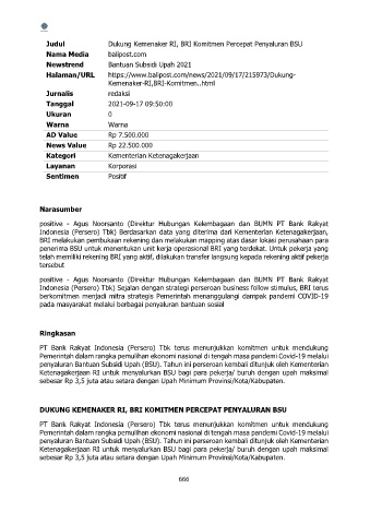 Judul Dukung Kemenaker RI, BRI Komitmen Percepat Penyaluran BSU