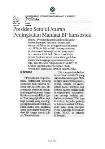 Title PRESIDEN SETUJUI ATURAN PENINGKATAN MANFAAT BP JAMSOSTEK Media Name Ekonomi Neraca Pub. Date 12 Desember 2019 Page/URL 6 Media Type Koran Sentiment Positive Page 9 of 110.