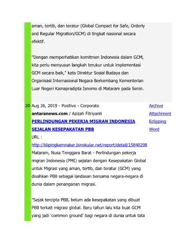 migran Indonesia (PMI) sejalan dengan Kesepakatan Global