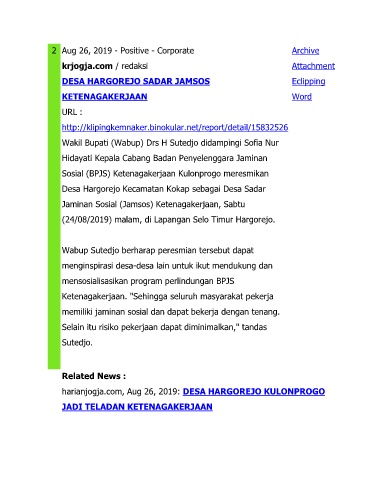harianjogja.com, Aug 26, 2019: DESA HARGOREJO KULONPROGO
