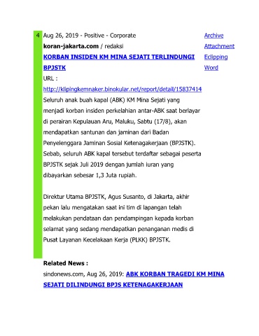 sindonews.com, Aug 26, 2019: ABK KORBAN TRAGEDI KM MINA