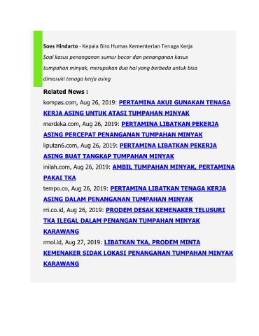 liputan6.com, Aug 26, 2019: PERTAMINA LIBATKAN PEKERJA
