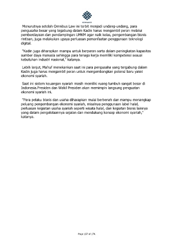 perluasan kegiatan usaha syariah seperti wisata halal, dan kegiatan bisnis lainnya