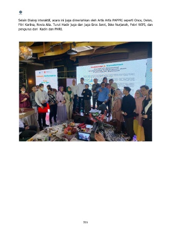 Selain Dialog interaktif, acara ini juga dimeriahkan oleh Artis Artis PAPPRI seperti Once, Delon, Fitri Karlina, Novia Alia. Turut Hadir juga dan juga Eros Jarot, Ikke Nurjanah, Febri WIFI, dan pengurus dari Kadin dan PHRI. 355