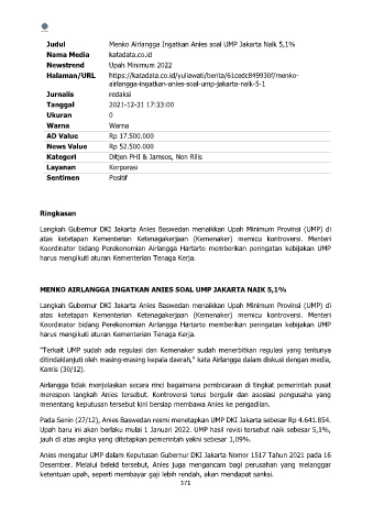 Judul Menko Airlangga Ingatkan Anies soal UMP Jakarta Naik 5,1%