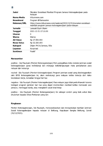 Halaman/URL https://www.tribunnews.com/nasional/2021/12/31/menaker-sosialisasi-