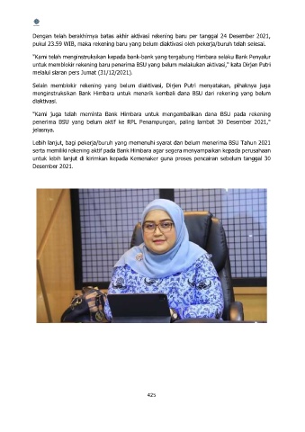 untuk memblokir rekening baru penerima BSU yang belum melakukan aktivasi," kata Dirjen Putri