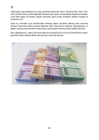 Lebih lanjut, bagi pekerja/buruh yang memenuhi syarat dan belum menerima BSU Tahun 2021