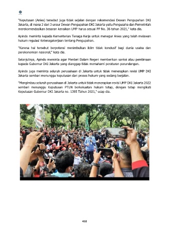 "Mengimbau seluruh perusahaan di Jakarta untuk tidak menerapkan revisi UMP DKI Jakarta 2022