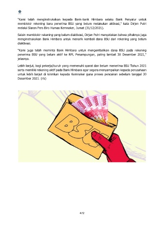 penerima BSU yang belum aktif ke RPL Penampungan, paling lambat 30 Desember 2021,"