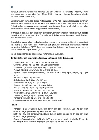 bersama, salah satunya adalah kenaikan gaji pegawai Pertamina pada April 2022. Direksi