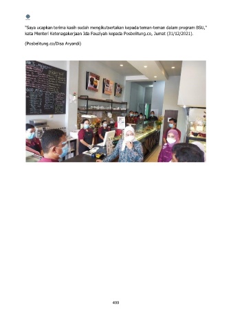 "Saya ucapkan terima kasih sudah mengikutsertakan kepada teman-teman dalam program BSU," kata Menteri Ketenagakerjaan Ida Fauziyah kepada Posbelitung.co, Jumat (31/12/2021). (Posbelitung.co/Disa Aryandi) 499