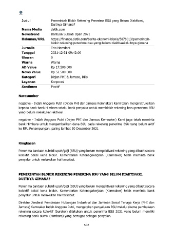 Judul Pemerintah Blokir Rekening Penerima BSU yang Belum Diaktivasi,