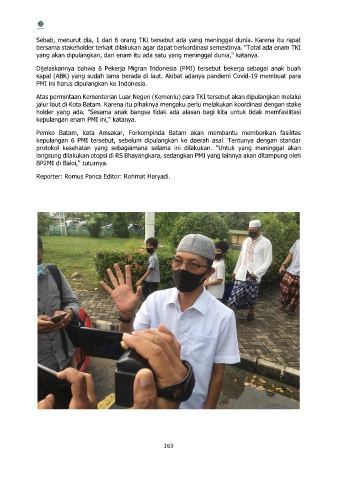 kepulangan enam PMI ini," katanya.