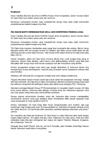 teknologi dan alih sumber daya manusia," kata Faozan Amar dalam Webinar UU Cipta Kerja pada