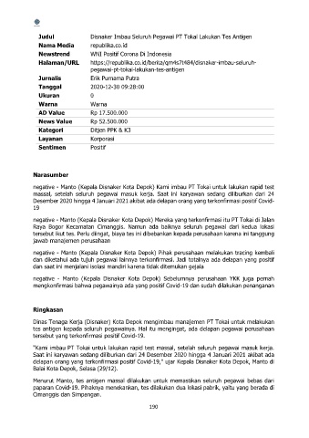 negative - Manto (Kepala Disnaker Kota Depok) Pihak perusahaan melakukan tracing kembali