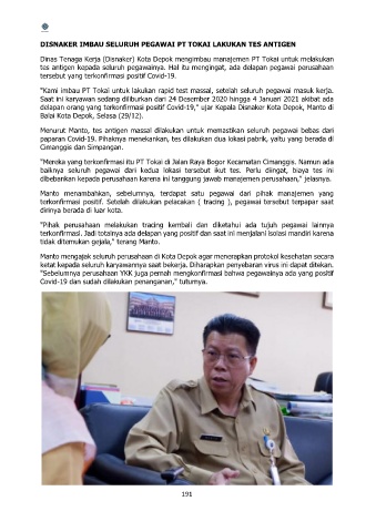 tes antigen kepada seluruh pegawainya. Hal itu mengingat, ada delapan pegawai perusahaan