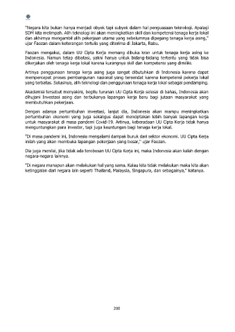 Dia juga menilai, jika tidak ada terobosan UU Cipta Kerja ini, maka Indonesia akan kalah dengan