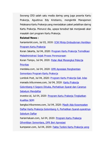 Prakerja, Agustinus Edy Kristianto, mengkritik Manajemen