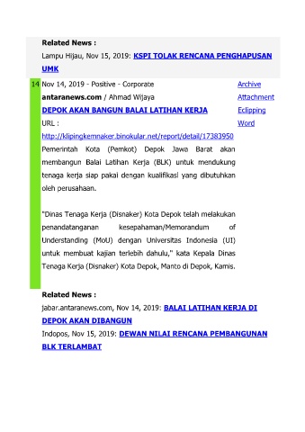 jabar.antaranews.com, Nov 14, 2019: BALAI LATIHAN KERJA DI