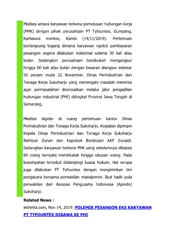 (PHK) dengan pihak perusahaan PT Tyfountex, Gumpang,