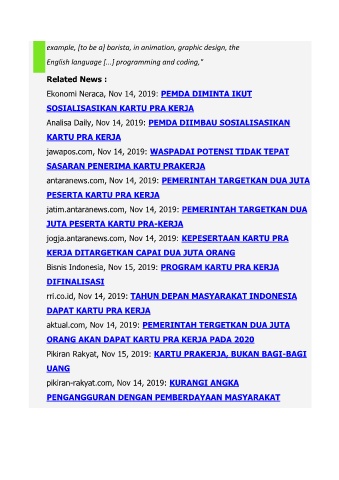 Bisnis Indonesia, Nov 15, 2019: PROGRAM KARTU PRA KERJA