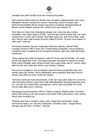 Menanggapi terkait kenaikkan UMP ini, Gubernur Banten Wahidin Halim menyebut