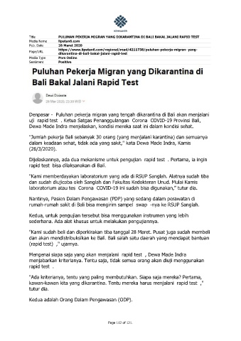 Title PULUHAN PEKERJA MIGRAN YANG DIKARANTINA DI BALI BAKAL JALANI RAPID TEST