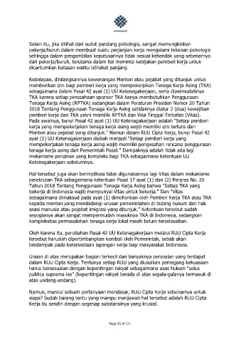Oleh karena itu, perubahan Pasal 42 UU Ketenagakerjaan melalui RUU Cipta Kerja
