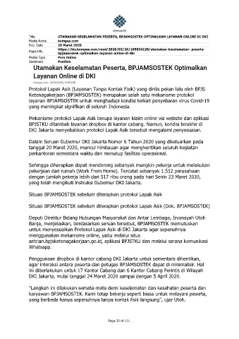 Title UTAMAKAN KESELAMATAN PESERTA, BPJAMSOSTEK OPTIMALKAN LAYANAN ONLINE DI DKI